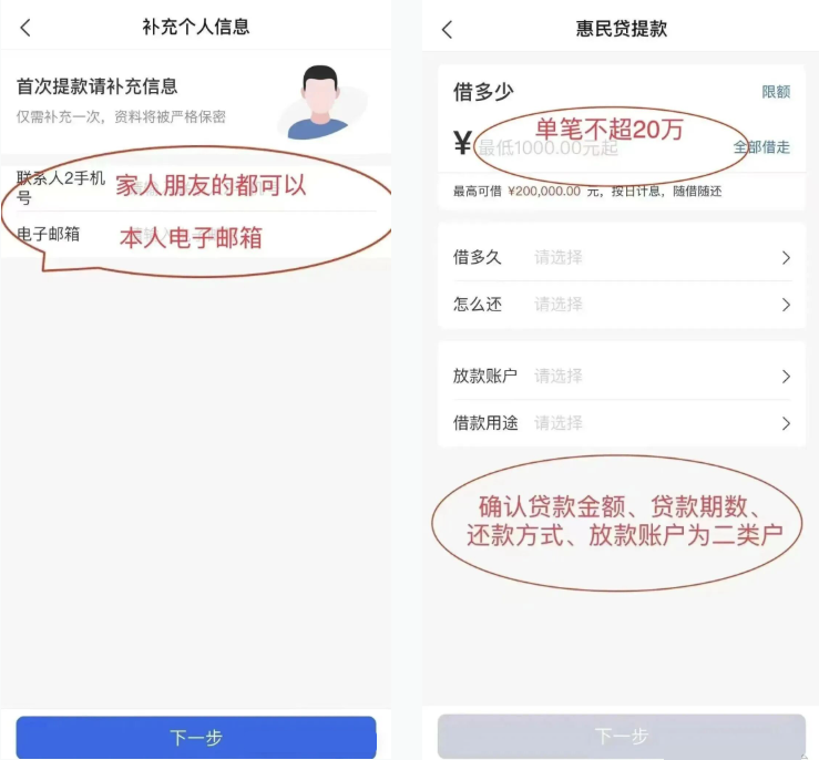 7、放款方式:可放款至二类账户,提款限额单日不超过20万元