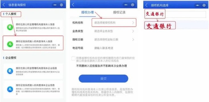 (1)公积金提额操作:微信搜索“全国住房公积金”小程序 → 授权交行查询 → 提交后系统自动匹配额度