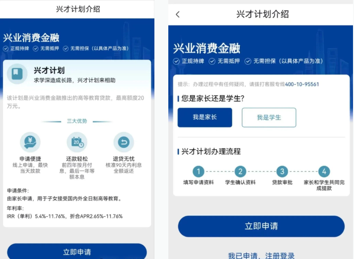 • 家长是主借款人,学生是共同还款人,需家长+学生双签;学生毕业前仅上报家长征信,毕业次月上报学生征信。