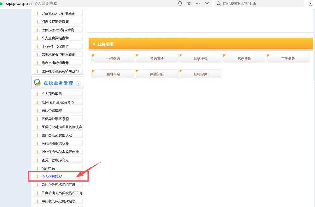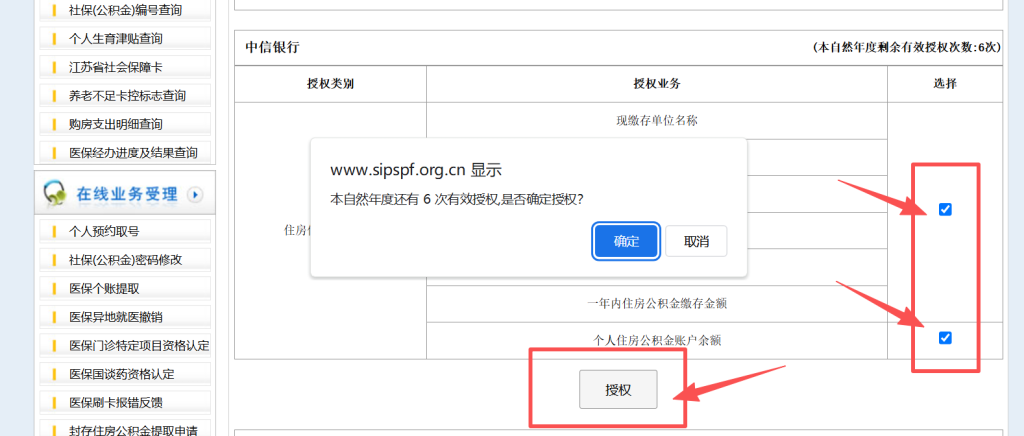 1.例如:中信银行授权,点击链接进入授权页面https://www.sipspf.org.cn/person_online/sipspf/pub/certify/person/check