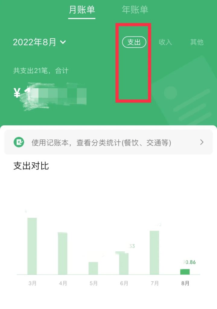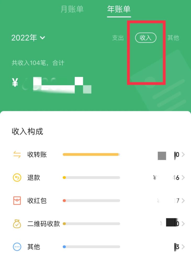 【4】点“统计”,点“年账单”,点收入,日期选今年,截图保存