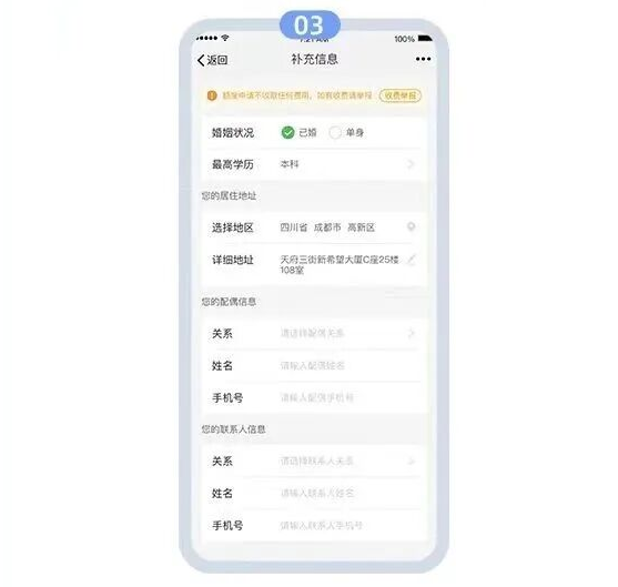 ⑥会告知是否需要添加担保人,如果需添加的会收到添加的短信提醒;
