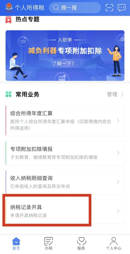 【2】往下拉,点“纳税记录开具”