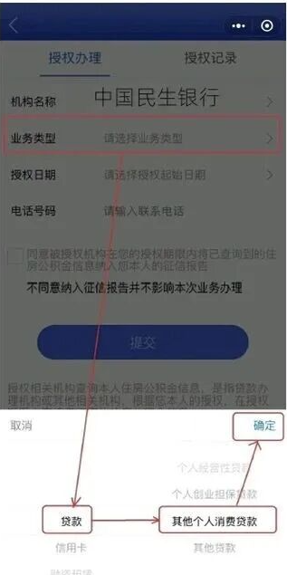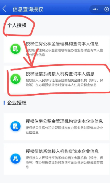 ④在“个人授权”栏位点击“授权征信系统接入机构查询本人信息”