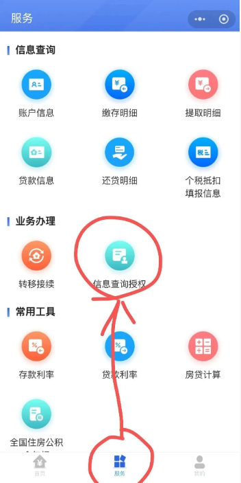 ③在“服务”页面点击“信息查询授权”