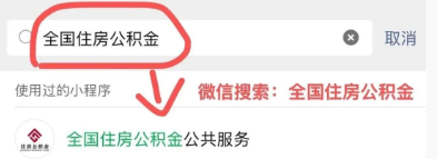 ①微信搜索“全国住房公积金”小程序。(该小程序的账号主体为“中华人民共和国住房和城乡建设部住房公积金监管司”)
