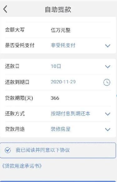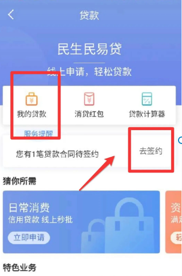 第三步:点击贷款,进行合同签约;签约后可自助提款