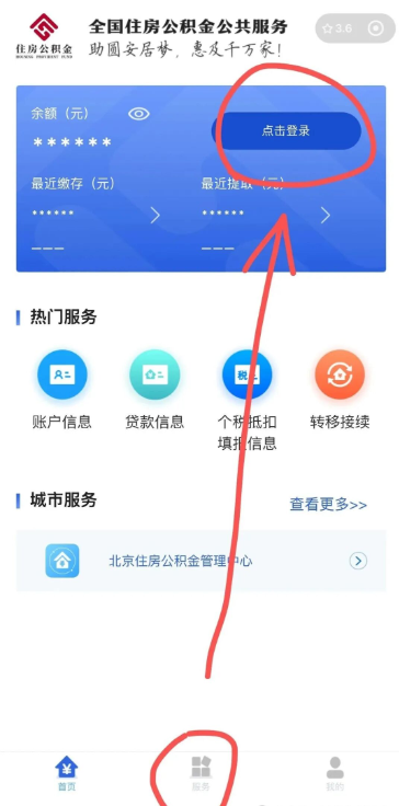 ②“点击登录”完成实名登录,底部的菜单栏点击“服务”