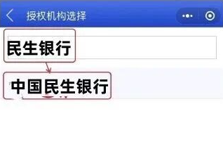⑥机构名称搜索并点击选择 中国民生银行