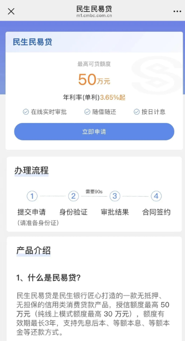 民生银行—民易贷申请流程: