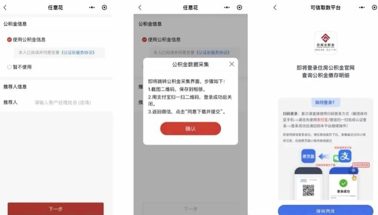 如使用公积金信息,需支付宝扫码登录住房公积金官网。