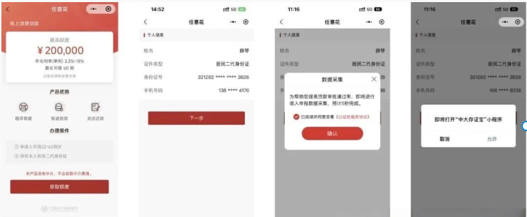 1、采集信息:手机号码、姓名及身份证号码