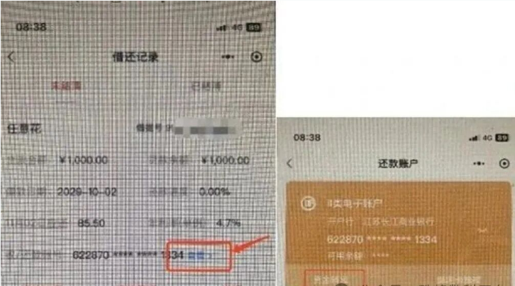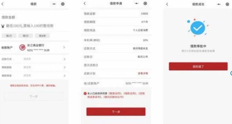 长江银行普惠金融小程序:【小程序-借款记录-收/还款账号-查看-资金转出】
