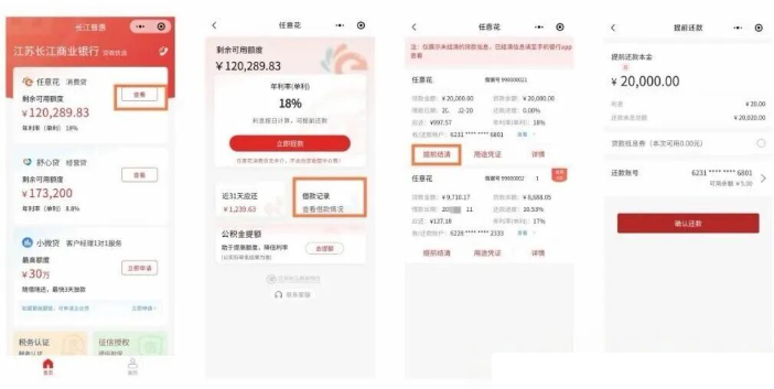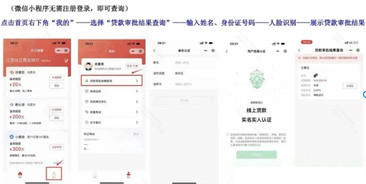 长江银行普惠金融小程序、江苏长江商业银行APP均可查询